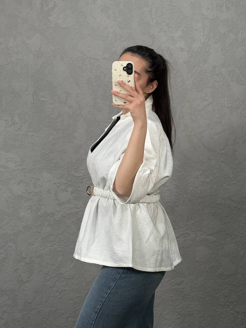 🔠🔠🔠🔠🔠🔠 کالکشن بهاره🌸 شومیز کمرسگک ژاکارد شیشه ای تنخور بی نظیری داره این کار قد : ۶۵ 🔸سایز بندی: free size مناسب تا سایز ۴۴